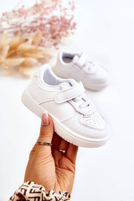 +1Dziecięce Skórzane Buty Sportowe Na Rzep Białe Baylene