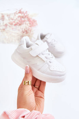 +1Dziecięce Skórzane Buty Sportowe Na Rzep Białe Angel
