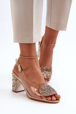 Sandały Zdobione Na Obcasie Złote S.Barski MR1037-16