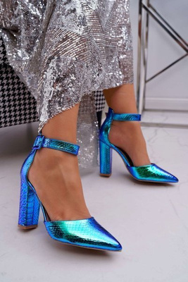 +1Czółenka Damskie Na Słupku Opalizujące Niebieskie Magnetic