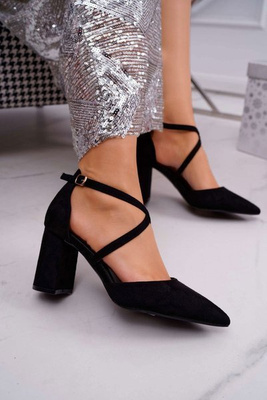 +4Czółenka Damskie Na Słupku Zamszowe Czarne Florena