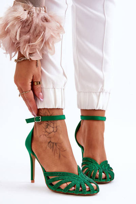 Zamszowe Czółenka Na Słupku Zielone Lexie