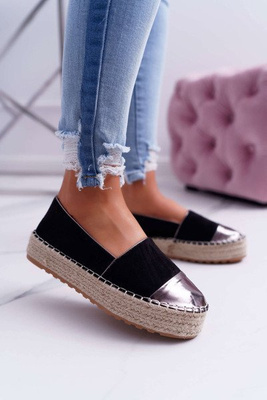 Espadryle Damskie Zamszowe Na Platformie Czarne Parteno