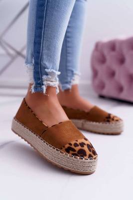 Brązowe Wsuwane Zamszowe Espadryle Leopard Mariako