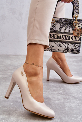 +9Klasyczne Skórzane Szpilki Perłowe Beżowe Magically