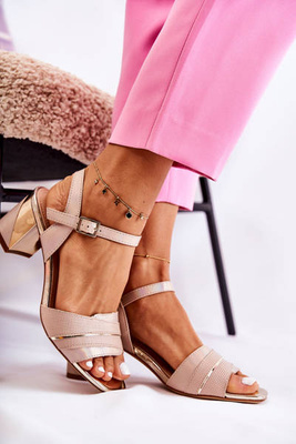 +2Skórzane Sandały Na Słupku Złoty Beż Corane