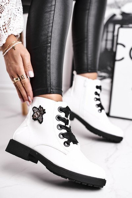 Botki Damskie Płaski Obcas Glany Lakierowane Białe Sergio Leone BT530