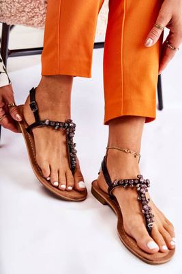 +1Wygodne Damskie Sandały Z Ozdobą Czarne Sabrine