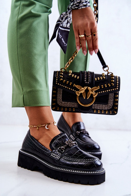 +1Skórzane Mokasyny Loafery Z Łańcuchem Czarne Killen