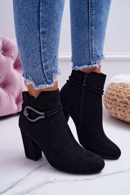 Botki Damskie Zamszowe na Słupku Czarne Barski 73-2