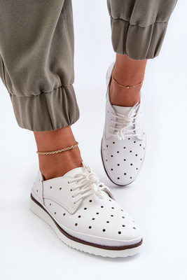 Skórzane Półbuty Damskie Białe S.Barski LR182