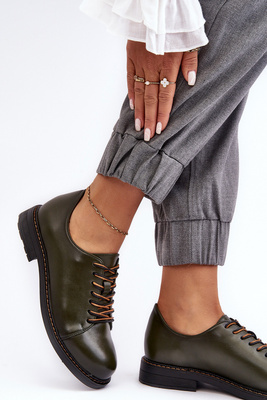+1Sznurowane Skórzane Damskie Półbuty Ciemnozielone Nakera