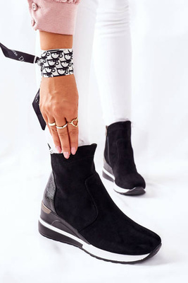 +1Zamszowe Damskie Botki Ocieplane Czarne Janice
