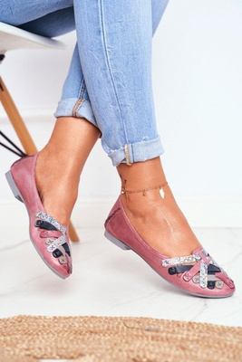 +6Baleriny Damskie Maciejka Skórzane Różowe 03497-15