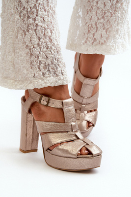 Skórzane Sandały Na Słupku Maciejka 06419-25 Złote