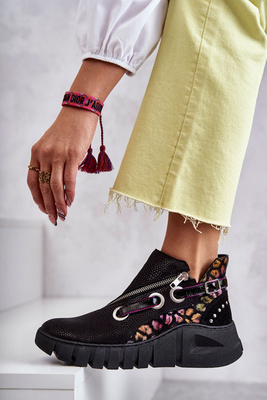 +14Skórzane Botki Maciejka Z Cętkami 04091-39 Czarne