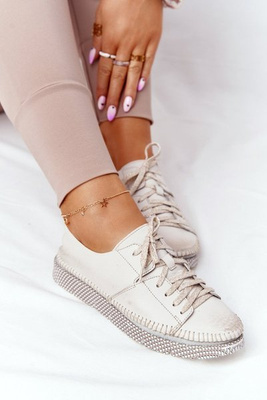+1Zamszowe Ażurowe Botki Maciejka Beżowe 05033-04