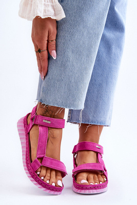 Zamszowe Sandały Na Rzep Big Star LL276012 Różowe
