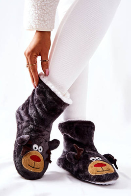 +5Świąteczne Papcie Ocieplane Renifer Szare
