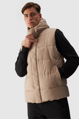 Bezrękawnik Puchowy Męski Z Kapturem 4FWAW24TVJAM144-83S Beżowy