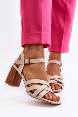 +2Sandały Damskie Na Słupku Beżowe Opifiana