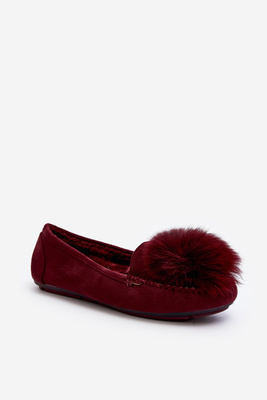 +4Damskie Mokasyny Z Futerkiem Bordowe Novas
