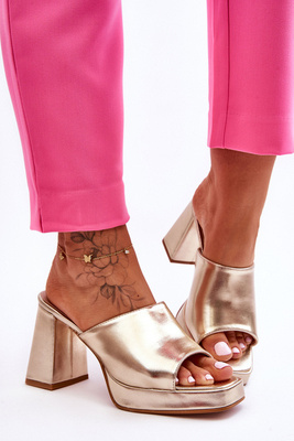 +2Skórzane Klapki Na Obcasie Złote Livesa