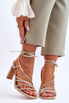 +4Damskie Wiązane Sandałki Na Szpilce Czarne Meya