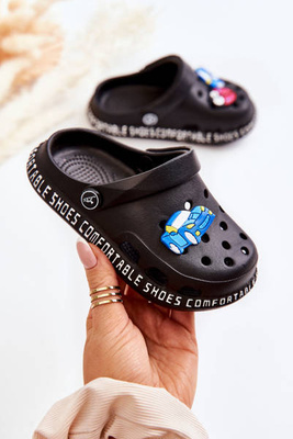 +3Dziecięce Lekkie Klapki Kroksy Z Ozdobą Czarne Bertis