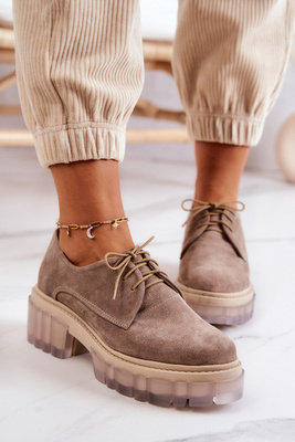 Modne Zamszowe Półbuty Loafery Beżowe Lauriss