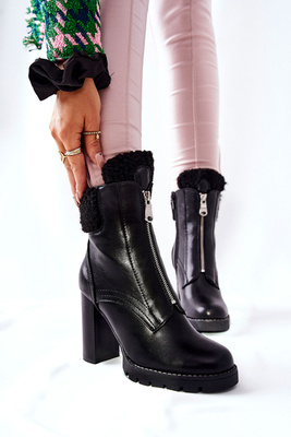 Skórzane Botki Na Słupku Wysokie Czarne Joyte