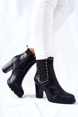 Ocieplane Botki Workery Z Ćwiekami Czarne Nephele
