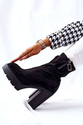 Zamszowe Botki Na Wysokim Słupku Czarne Besis
