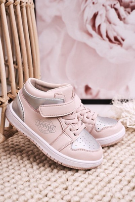 +2Dziecięce Wysokie Trampki Ze Ściągaczem Biało Różowe Baxter