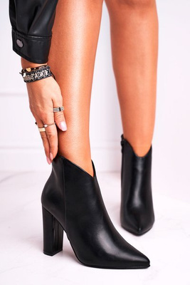 +1Damskie Botki Na Słupku Wycięte Czarne Meliori Dream
