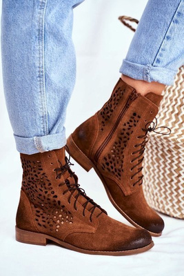 +1Botki Damskie Skórzane Cappucino Low Meridan