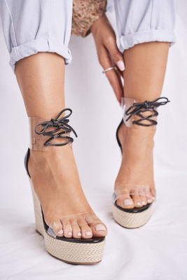 +1Sandałki Damskie Na Koturnie Czarne Beautiful Way