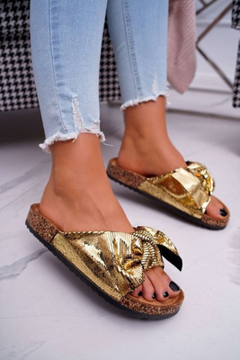 +3Klapki Na Korku z Kokardą Złote Metalics