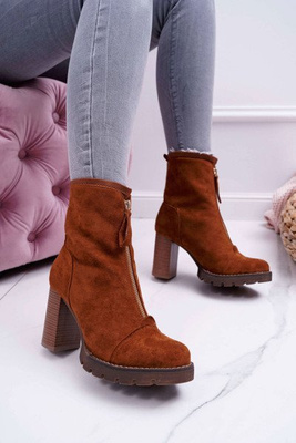 +2Botki Damskie Na Obcasie Skóra Zamsz Koniak Nicole 2433