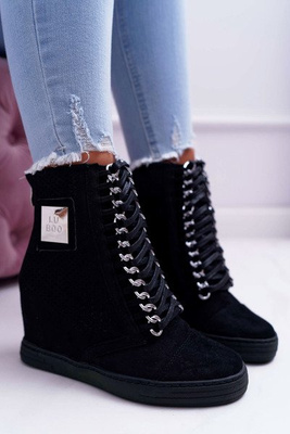 Sportowe Damskie Buty Zamszowe Czarne Skóra Węża Lollipop