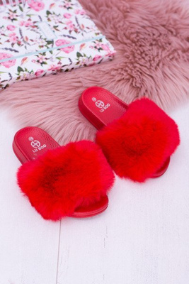 Lu Boo Dziecięce Czerwone Klapki Z Futerkiem Fur XXL Poli