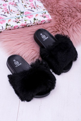 Lu Boo Dziecięce Czarne Klapki Z Futerkiem Fur XXL Poli