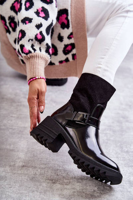 +1Damskie Botki Ocieplane Na Masywnym Obcasie Czarne Marinela