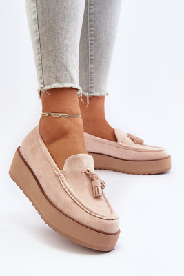 +5Pokaż filmMokasyny Damskie Na Platformie Z Frędzlami Jasnobeżowe Mialani