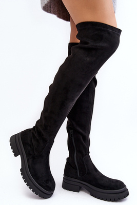 Damskie Kozaki Przed Kolano Na Płaskim Obcasie Czarne Klemmo