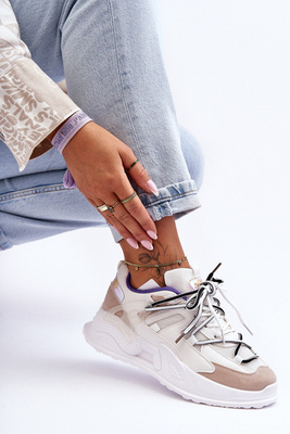 +1Damskie Skórzane Buty Sportowe Na Masywnej Platformie Beżowe Belisso