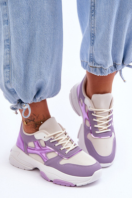 +3Damskie Klasyczne Buty Sportowe Biało-Fioletowe Night Trip