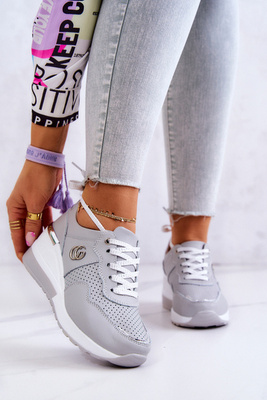 +2Damskie Skórzane Buty Sportowe Sneakersy Szare Loissa