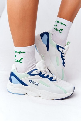 +2Damskie Sportowe Buty Memory Foam Big Star HH274810 Biało-Zielone
