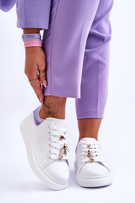+3Damskie Buty Sportowe Na Masywnej Platformie Biało-Fioletowe Chante